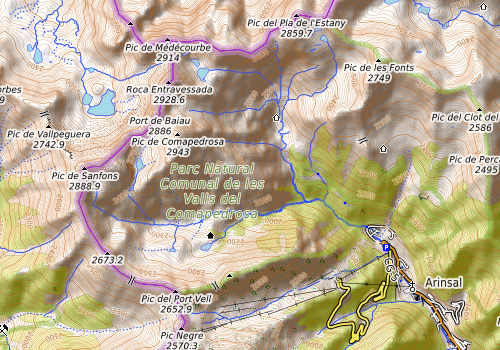 Fantastisk tur til Andorras høyeste fjell. Parkerte på parkeringen ved hotellet/gondolen og løp gjennom tunnelen. Gikk innover dalen til turisthytta Refugi de Compedrosa og fortsatte videre innover dalen mot toppen. Godt merkede stier. Stien delte seg rett før vannet Estany Negre, jeg valgte å gå stien til høyre for å komme opp på ryggen. Veldig fin utsikt oppover ryggen.