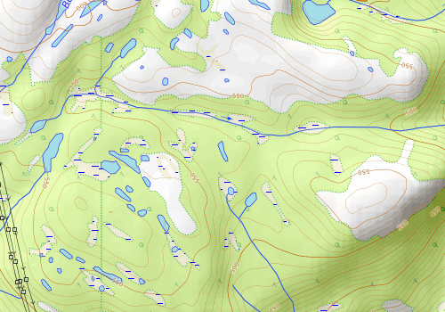 Rett etter Lille Vore var det merket to alternativer videre. Vi valgte å ta veien rett frem. Videre innover terrenget var veien merket, men det var vanskelig å finne en tydlig stil. Vi mistet også tidvis merkene, men klarte å holde retningen og fant alltid tilbake til nye merker etterhvert.