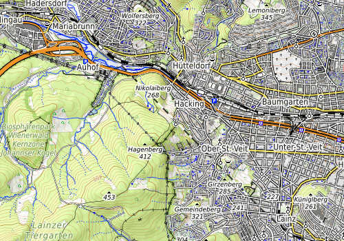 On this day, we thought that it was a nice idea to make an excursion to the Lainzer Tiergarten on the other side of the Wien-valley. We first headed towards Dehnepark, then down to Linzer Straße. After walking down Bergmillergasse for a short stretch, we used Brauhausbrücke to get over the Wien stream towards the other side. There, it was then only a few meters to get to Nikolaitor (and through it into Lainzer Tiergarten). Once in the park, we first passed by Nikolaikapelle, reading a bit about its very long history! Then, we started walking uphill along the Hackenbergweg (into the direction of Hagenberg). After visiting Hagenberg, just briefly, we continued, heading for a nice pace called Wiener Blick (for its nice view across Wien, of course). We then continued to Rohrhaus, before starting our way back (down via Jakober Wald to Roter Ziegel, then back to Nikolaitor).