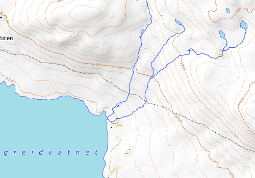 Her hadde jeg tatt en liten avstikker ut fra hovedløypa og gått til kvisteløypa som ses litt til høyre på bildet som fører opp til toppen av Monsbunuten, eller rettere sagt svinger noen få meter fra selve toppunktet.