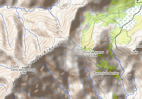 Salto del Lobo, kort avstikker fra hovedstien. I bakgrunnen Cerro de Lastonar, høyeste punkt på ryggen.