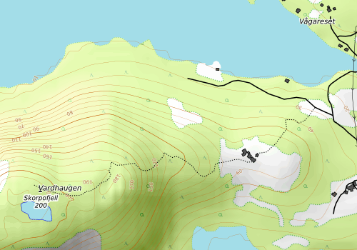 Tur til Skorpo sammen med Harald og Petter. Hadde avtalt båtskyss med Ole Vågen som bor på Skorpo. Han la til kai da vi kjørte ned på kaien, så her var det bare å få med seg sekken og hoppe om bord. Først opp til Vardhaugen 234 der det står en stor varde. Greit opp på fin sti. Men dette er ikke toppen. Den ligger 300m. i luftlinje sydvestover på øyen. Her er det ikke sti, men lett å gå. Flott utsikt fra begge toppene. Tilbake samme vei til kaien. Ole var nå opptatt med et arbeid og ordnet skyss over fjorden for oss. Etter litt venting kom Anja over og skysset oss tilbake til Uskedal.