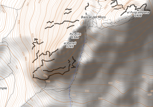 Puig Campana er Benidorms store og ruvende vokter, der det merkelig hakket ved toppen, kjent som Porten og Rolands-hogget (Roland's stab), er opphav til flere legender om fordums heltedåder. Toppen kan bestiges på sti fra sør og nord, men krever en viss innsats, da det uansett blir opp mot en vertikal kilometer å overvinne. Vi bestemte oss for å gå opp renna fra sør og returnere mot nord og på stien rundt fjellet.