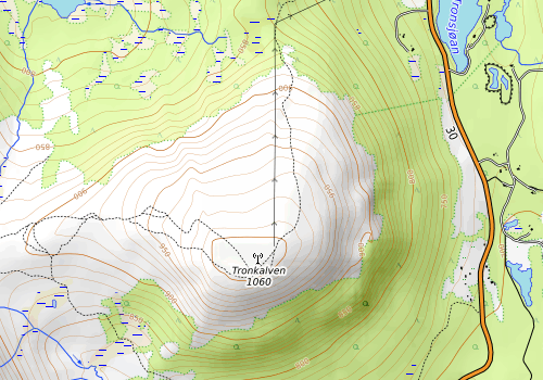 Etter turen på Storfjellet satte jeg kursen mot Tylldal for en tur på Kalven. Jeg så på kartet at det gikk en kjerrevei opp fra sørsiden, og tenkte at da kan jeg sykle opp.