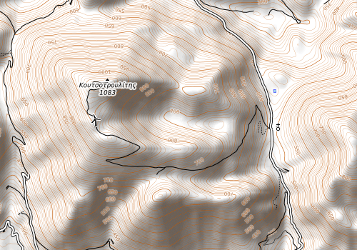 Etter en behagelig natt i den lille landsbyen Anogia (se turrapport fra gårsdagen: Mount Ida), kjørte jeg opp til passet på østsiden av Kutsotripis og parkerte ved en taverna der (ca 500 m.o.h). Fra passet går det en grusvei helt til topps, men den er dessverre sperret av med en låst bom. Det ble fryktelig varmt og litt kjedelig å gå på denne støvete grusveien. Men det var heldigvis bare 4 km opp. På toppen er det en vindmøllepark og pen utsikt utover havet mot nord samt til Mount Ida i sydlig retning.